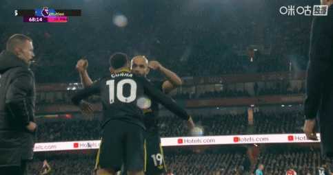 01月26日讯 英超第23轮,阿森纳主场迎战曼联,比赛第68分钟,姆伯莫被库尼亚换下,卡里克搂着他交流一下。